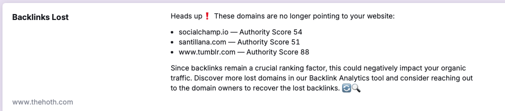 Further vetting is required for each prospect, but it’s an extremely quick and handy way to build a list of viable backlink opportunities. Semrush’s Copilot AI can also chime in with prospecting ideas, so pay attention to its personal recommendations for your website. Copilot will also notify you whenever you lose backlinks, so it’s also good for retaining the links you already built: